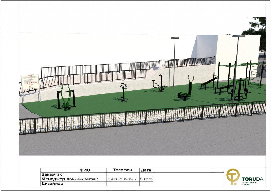 Менеджер Фоминых Михаил подобрал оборудование, ориентируясь на особенности локации, возраст и количество детей, которые будут пользоваться объектом. Монтажник Александр Мудров выполнил демонтаж старых конструкций, подготовку основания, заливку нового бетона, установку тренажёров, воркаут-элементов и мягкого резинового покрытия. Дизайн-проект разрабатывался штатным дизайнером компании, что позволило гармонично вписать площадку в существующую инфраструктуру.