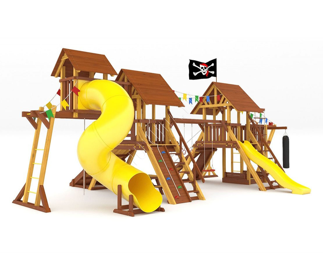 Площадка Галиот 16 обладает довольно широким функционалом (который по желанию можно легко расширить). А на качелях могут кататься даже родители! Детская площадка предназначена для дачи, коттеджа.