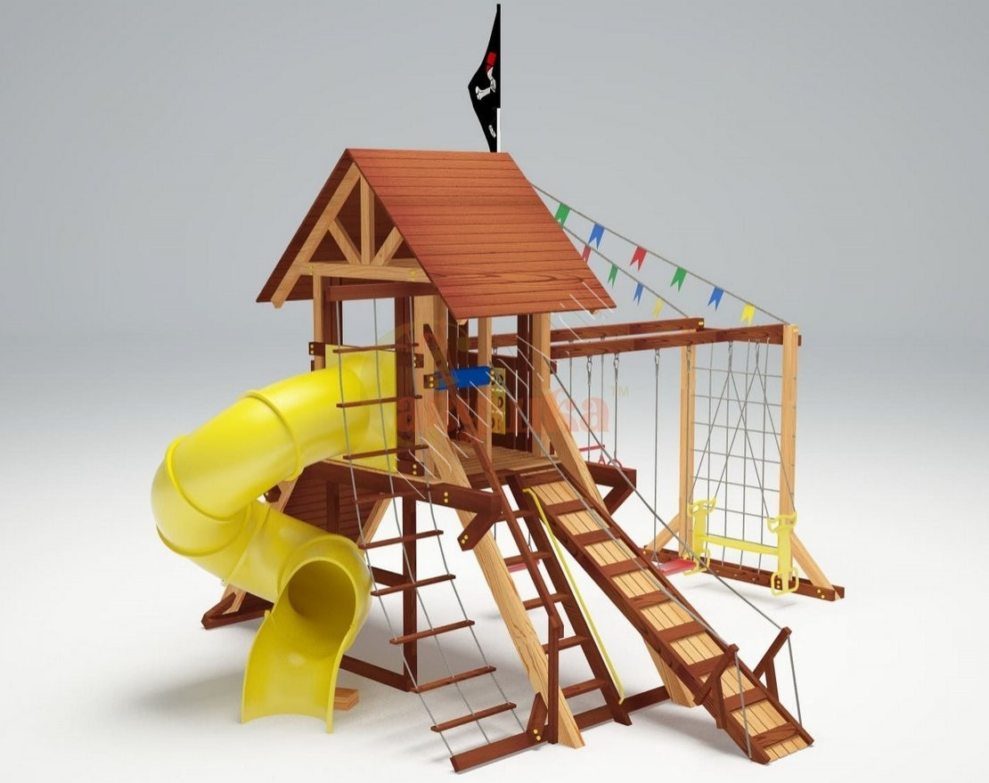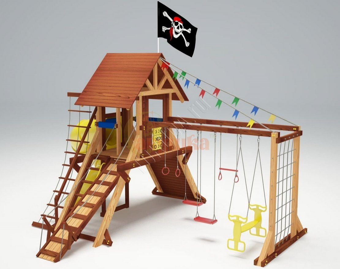 Площадка Галиот 12 обладает довольно широким функционалом (который по желанию можно легко расширить). А на качелях могут кататься даже родители! Детская площадка предназначена для дачи, коттеджа.