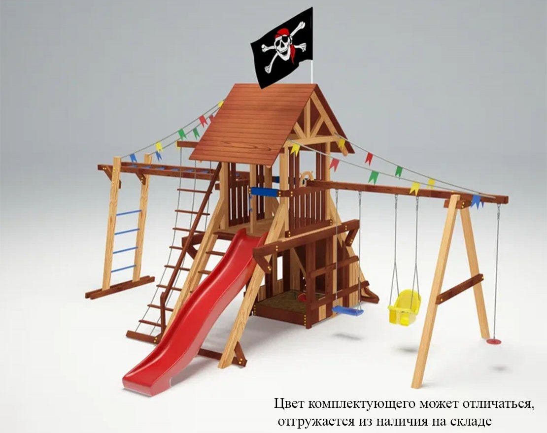 Площадка Галиот 3 обладает довольно широким функционалом (который по желанию можно легко расширить). А на качелях могут кататься даже родители! Детская площадка предназначена для дачи, коттеджа.