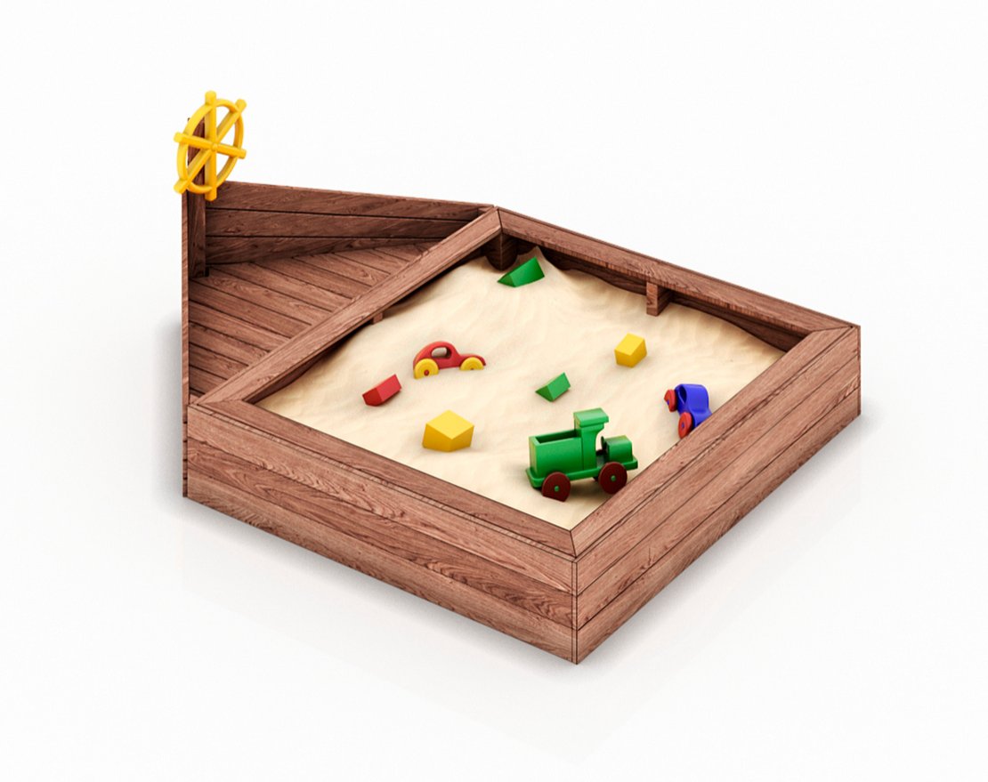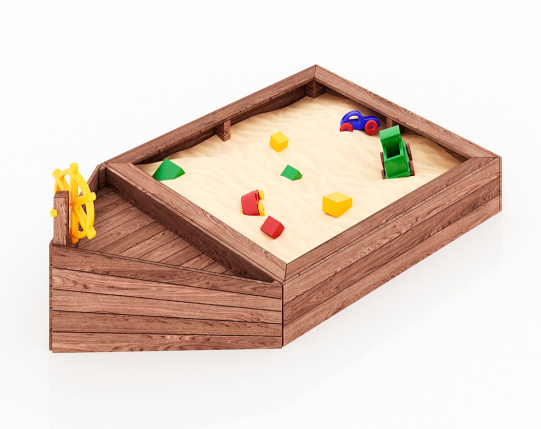 Детская песочница в виде кораблика, удобная, компактная.