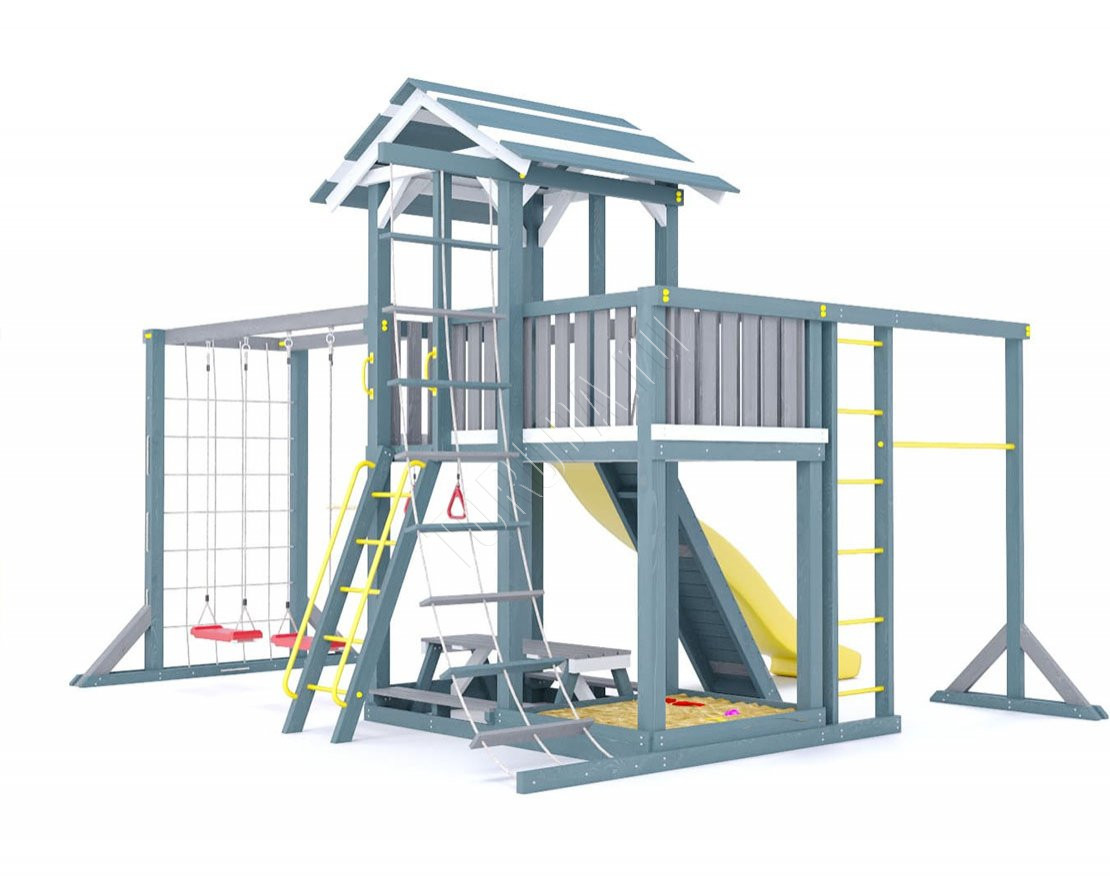 Площадка Парус 6 обладает довольно широким функционалом (который по желанию можно легко расширить). Детская площадка предназначена для дачи, коттеджа.