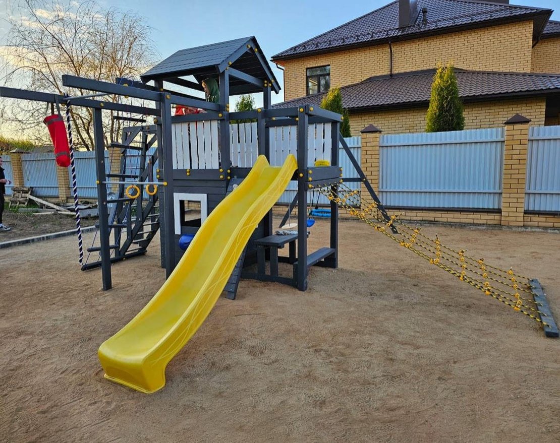 Максимально возможная комплектация в сочетании с турником, скамейками со столиком, домиком с окошками (теремок), в комплекте большая паутинка и пиратская лестница. Детская площадка в полной комплектации позволит вашим детям разнообразить свои игры на свежем воздухе, а так же пригласить своих друзей для веселого времяпрепровождения. Места хватит всем!