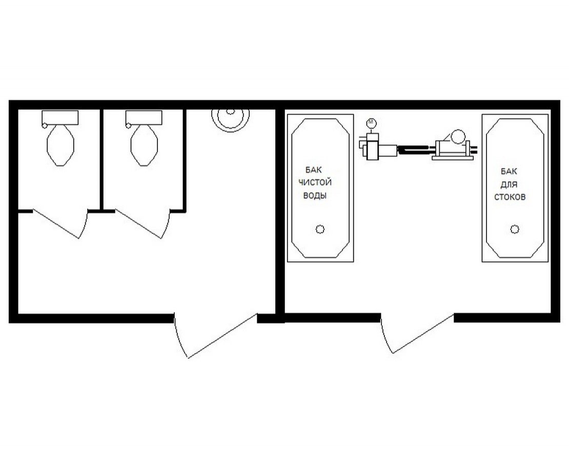 - Емкость ПВХ 1500 л – 2 шт: емкость для воды, емкость канализационная (можно увеличивать объем емкостей)
