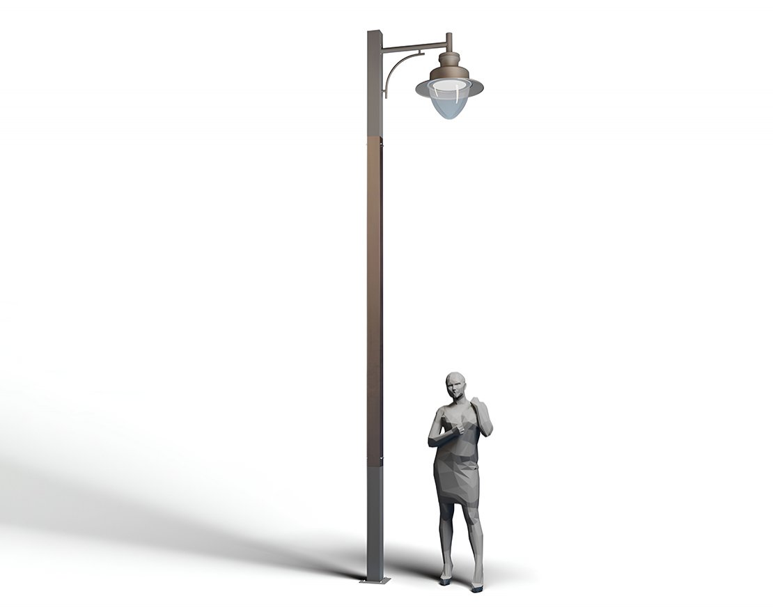 Производится путем бетонирования закладной детали с последующим креплением к ней стойки фонаря болтовым соединением.